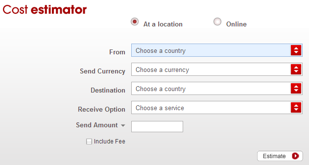 Once you have selected the country you are sending from and the country that will receive the money, you will be prompted, you must specify how much money you are going to send or receive, and it will calculate the cost, with or without the fee.
