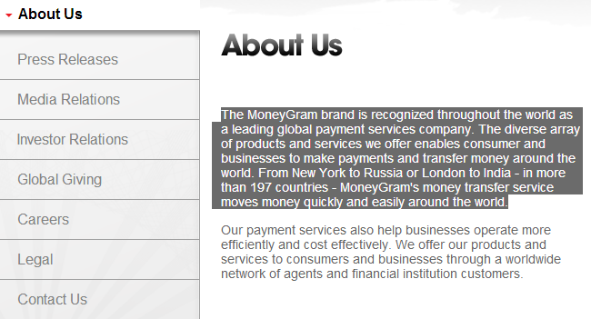 (Quote taken directly from the MoneyGram website.)