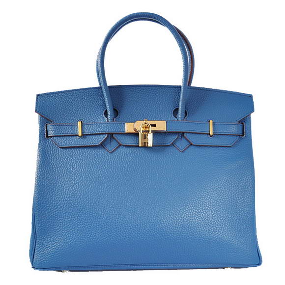 Home » Replica Handbags >> Hermes Handbag >> Hermes Birkin 35CM >> Hermes Birkin 35CM Tote Bags Togo Leather Mid Blue Golden