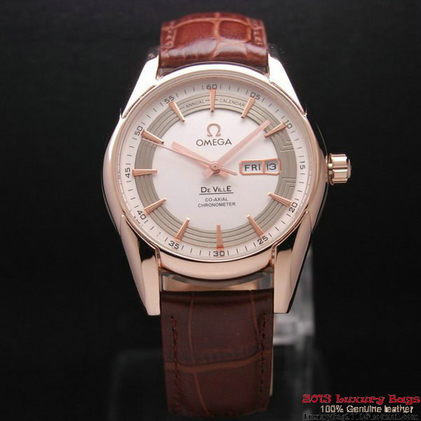 Home » Watches Online >> Omega Watches >> OMEGA DE VILLE HOUR VISION ANNUAL CALENDAR Red Gold on Brown Leather Strap OM77119