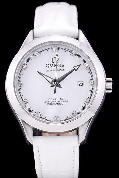 Back: Polished stainless steel snap in back with Omega inscriptions